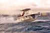 Economy wise, initial sea trials with the Mercury 250hp V8 outboard produced a WOT speed of 44 knots, travelling 19.7 kilometres using 20.7 litres.