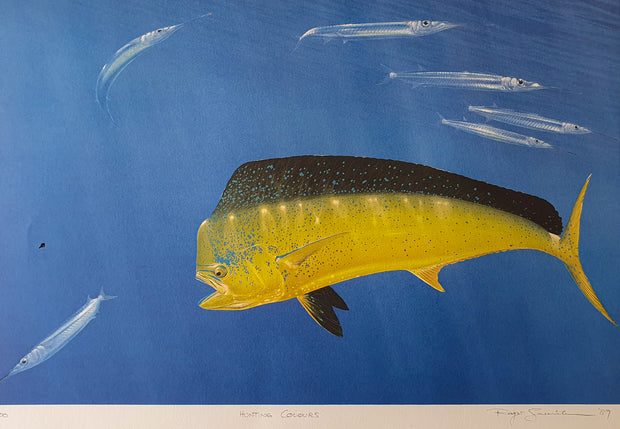Mahi mahi Hunting Colours, Lithographed from a watercolour (matt paper) 56 cm x 38 cm.